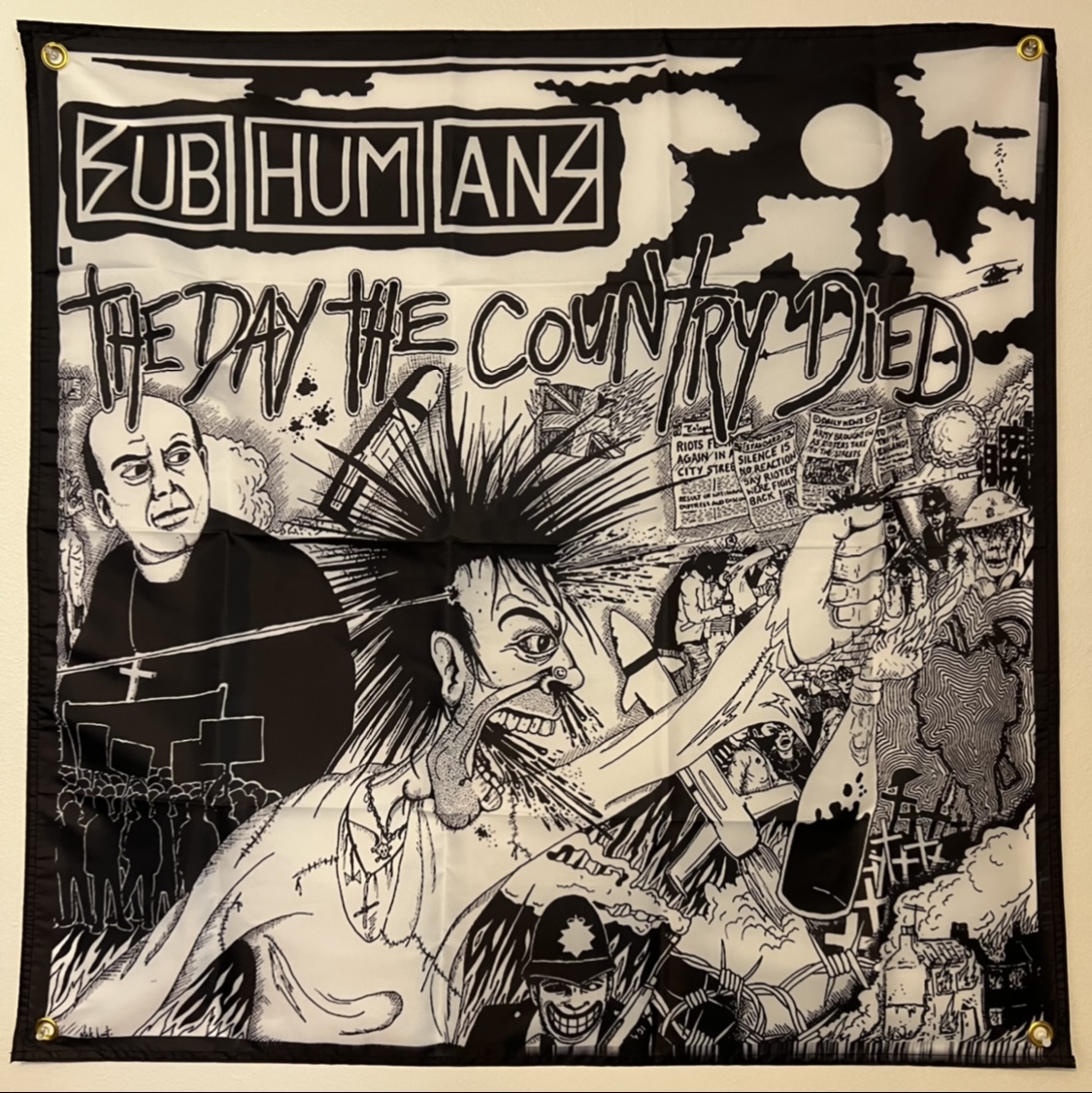 Awesome print on a 3ftx3ft banner. 4 metal corner grommets for easy hanging. Imported and limited stock.